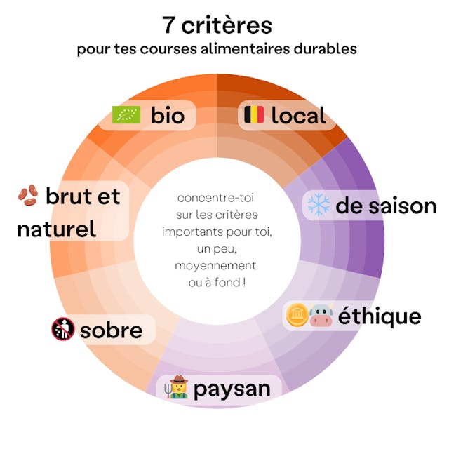 - Des aliments produits de manière éthique: il existe en Belgique un label Prix Juste Producteur qui garantit une juste rémunération des agriculteurs et éleveurs. Pour des produits exotiques, jette un œil du côté des labels du commerce équitable . Pour le bien-être animal , tu peux aussi veiller à éviter la viande provenant d'élevages intensifs, réduire ou même mieux, arrêter ta consommation de viande